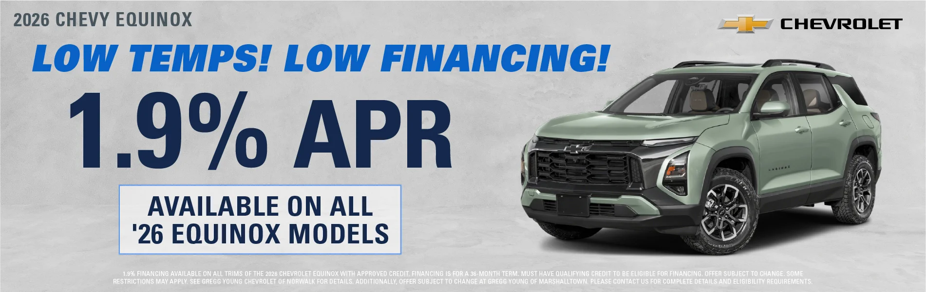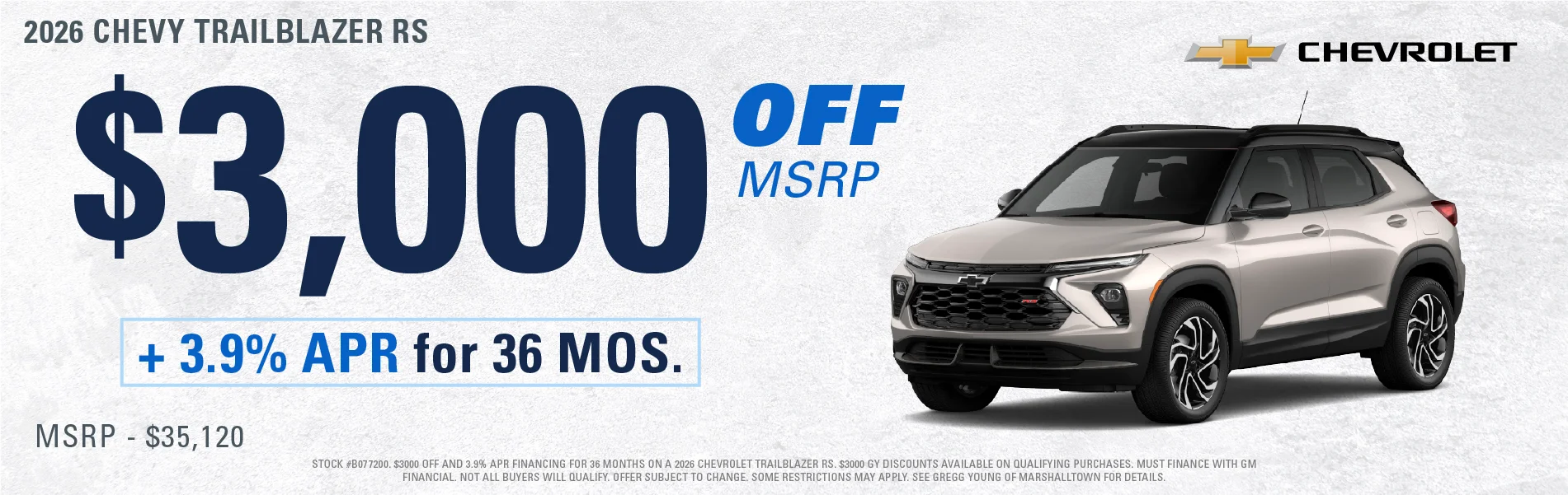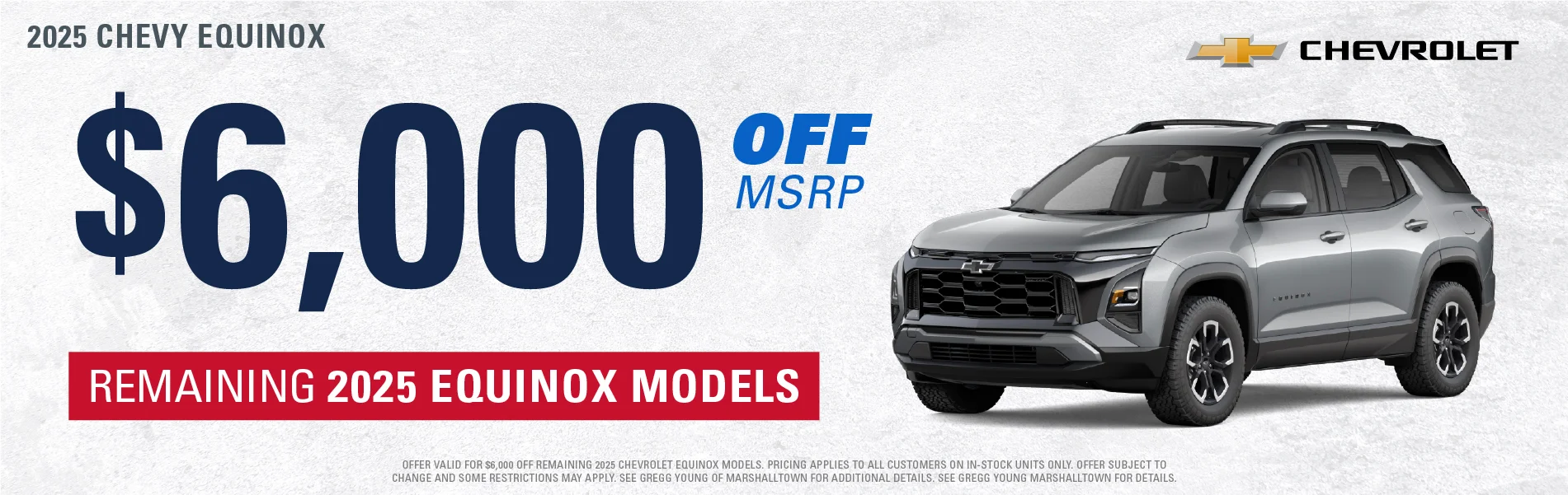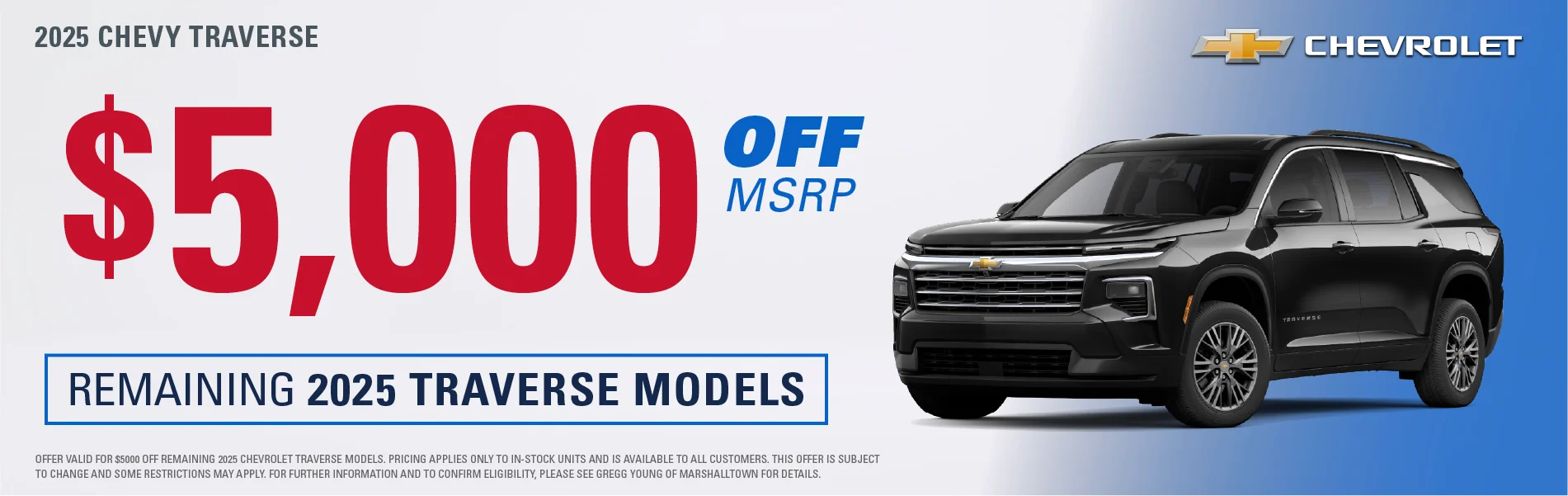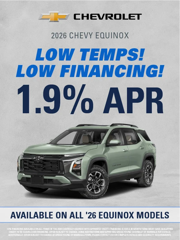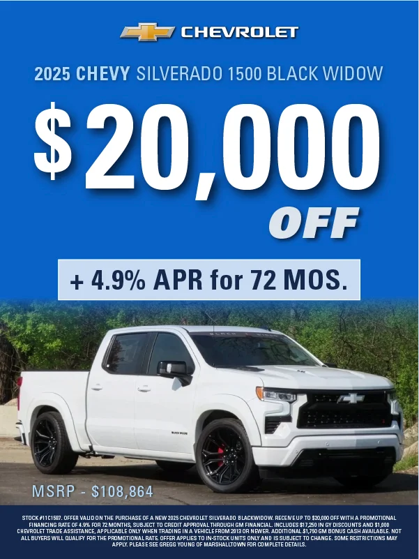 At Gregg Young Chevrolet Marshalltown, we’re proud to be your local Chevy dealer in Central Iowa, offering a full lineup of new Chevrolet cars, trucks, and SUVs, plus a wide range of used and certified pre-owned vehicles. Conveniently located on South Center Street, we proudly serve drivers from Marshalltown, Ames, Newton, and nearby communities with a hometown experience backed by big-city value.